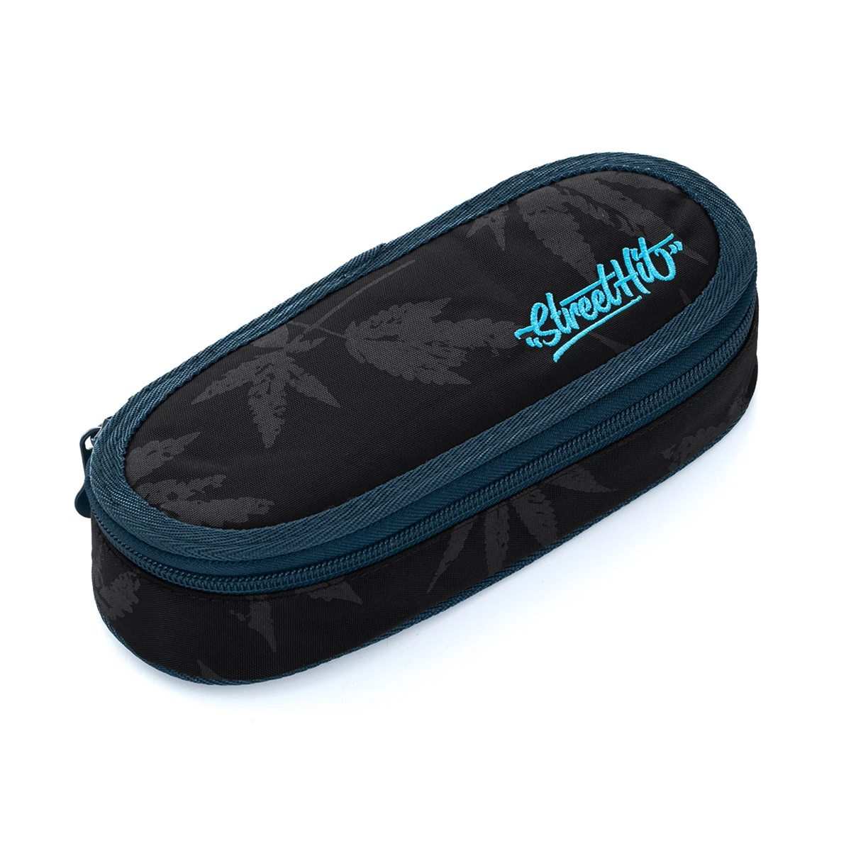 Ovales Federmäppchen für alle Bedürfnisse. Im Inneren befindet sich eine Netztasche mit Reißverschluss und einer Klappe, an der Gummibänder zur Befestigung von insgesamt neun Bleistiften und Stiften angebracht sind, die übersichtlich und griffbereit sein müssen. Der Freiraum unter der Klappe ermöglicht es Ihnen, weitere Schreibwahren frei zu platzieren – Buntstifte, Marker, was auch immer Sie brauchen.