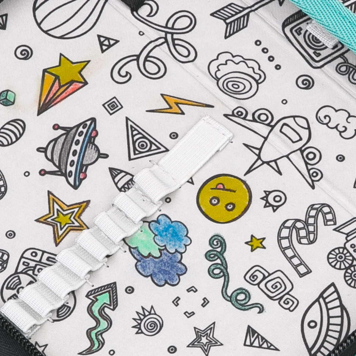 – Das Innenfutter von dem Federmäppchen ist aus grauem Stoff und die darauf gedruckten Bilder könnten bemalt werden! Zum Ausmalen empfehlen wir klassische Buntstifte, Filzstifte könnten verwischen…