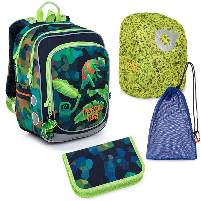 Großes Schulset Topgal ENDY 22055 B – Schulrucksack + Federmäppchen + Schuhbeutel + Regenhülle