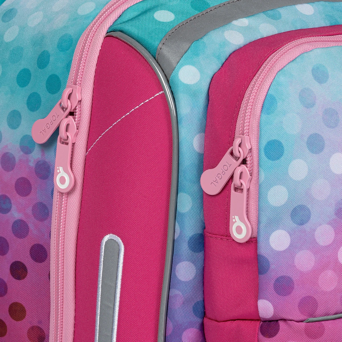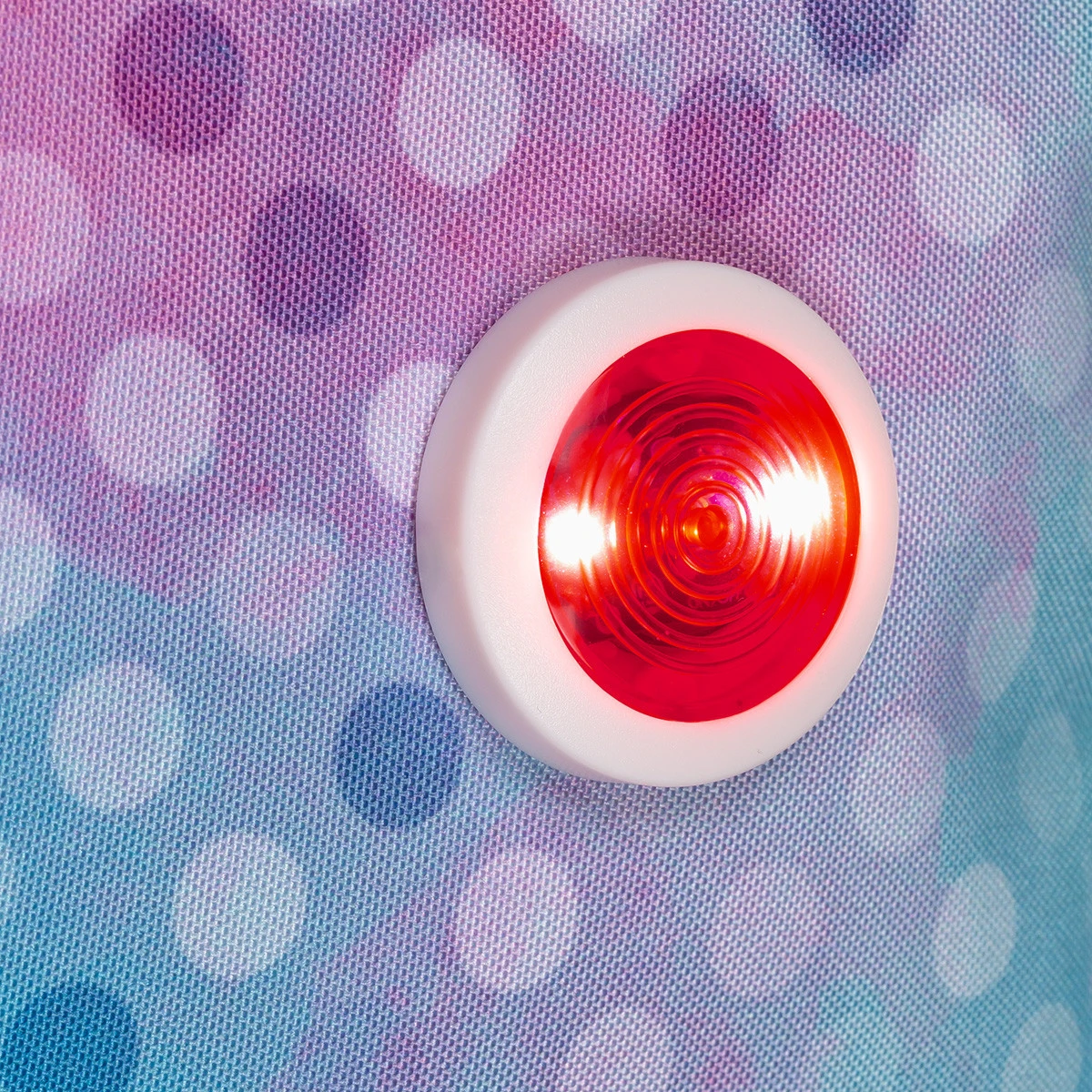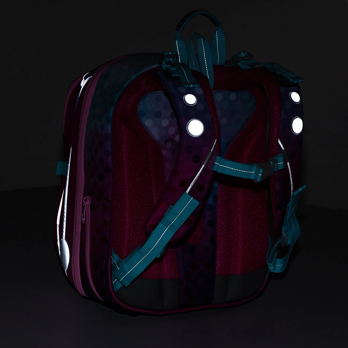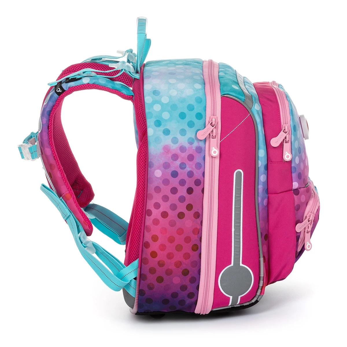 Aktentasche für die kleinsten Schulmädchen mit Warnlichtanlage an der Vordertasche und übersichtlicher Einkammerteilung.