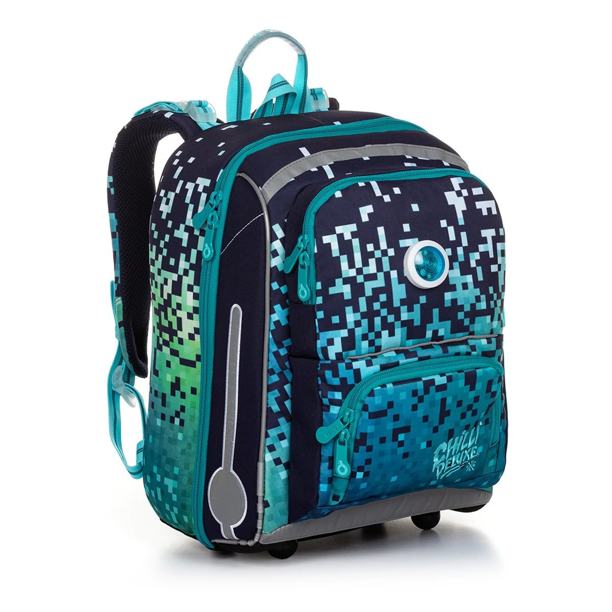 Ein Hauptfach der Aktentasche für ein Kind erleichtert die Organisation und Verteilung der Hilfsmittel. Der Innenraum der Aktentasche wird durch undurchlässige gummierte Trennwände in drei Teile geteilt. Im Hauptfach finden Sie ein kleines Reißverschlussfach und einen Organizer, zum Beispiel für Chipkarten und Stifte. Achten Sie darauf, die Mappen möglichst nahe am Rücken zu platzieren, aber überlegen Sie, ob sie sie überhaupt brauchen – oft belasten sie die Aktentasche unnötig. Die Flaschentasche befindet sich an der Seite der Aktentasche.