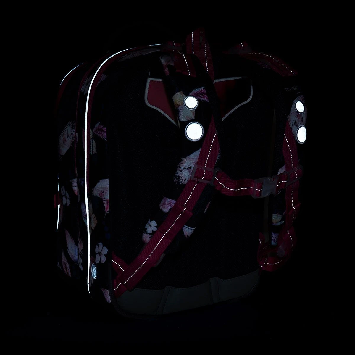 – reflektierende Elemente – an der Vorderseite und den Seiten des Rucksacks, an den Schultergurten