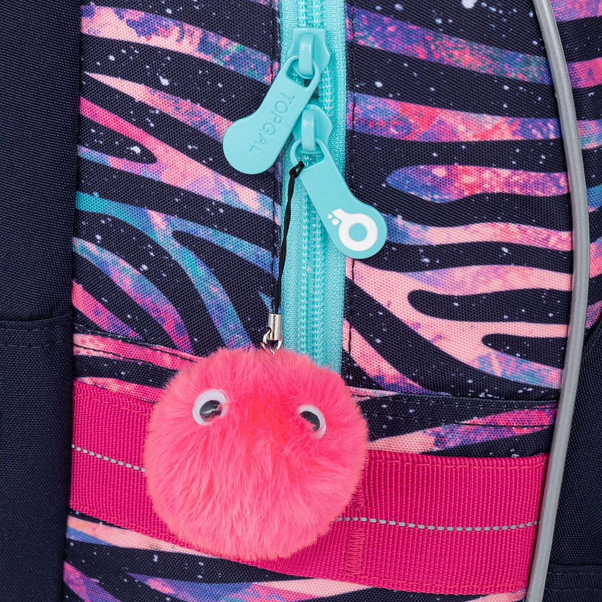Im gleichen Design zu kaufen gibt es ein Einkammer Federmäppchen PENN oder ein ovales ETUE. Das Federmäppchen PENN passt beispielsweise in die kleine Fronttasche, in der sich auch ein abnehmbarer Karabiner für einen Schlüssel befindet. Sie können die Tasche aber auch als Tasche für eine Snackbox nutzen. Verstauen Sie außerdem eine Trinkflasche in eine Tasche an der Seite des Rucksacks.