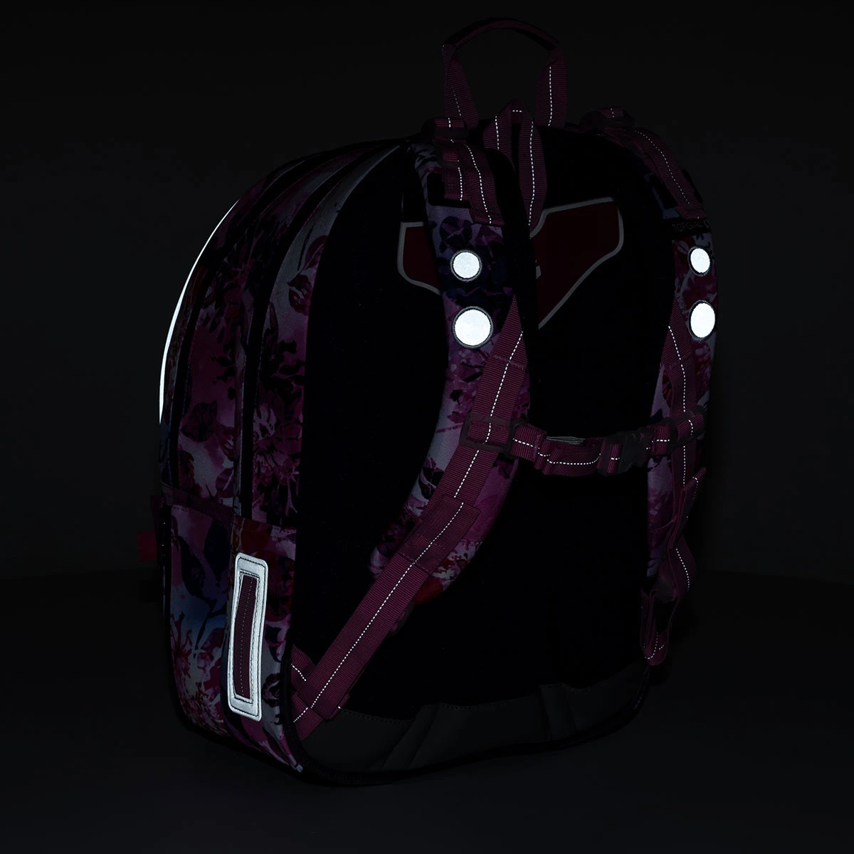 Das KIMI- Modell ist an allen Seiten des Rucksacks mit einer Reihe von reflektierenden Elementen ausgestattet. Sie können sich diese auf den Detailfotos ansehen, welche wir im Dunkeln aufgenommen haben.