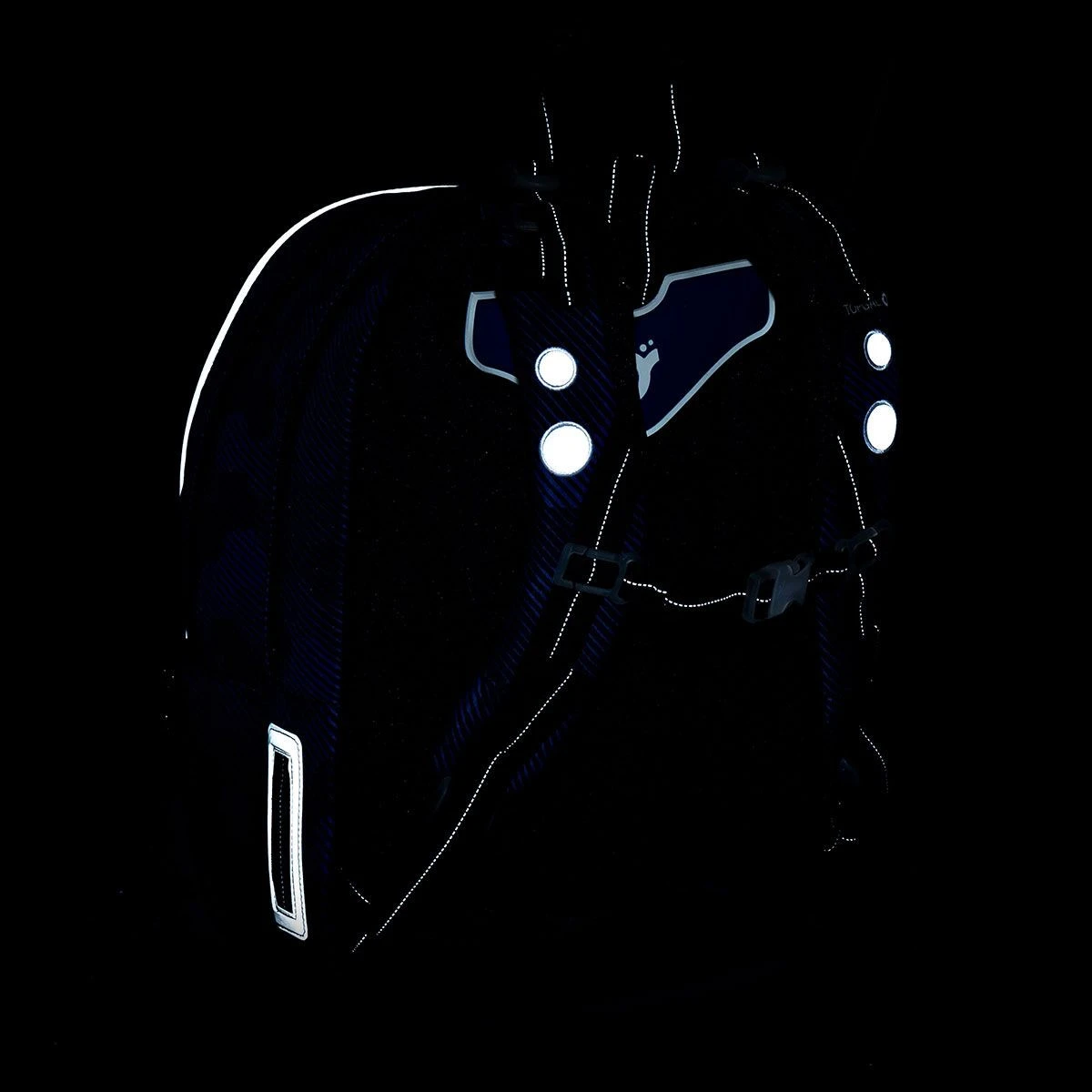 Das KIMI- Modell ist an allen Seiten des Rucksacks mit einer Reihe von reflektierenden Elementen ausgestattet. Sie können sich diese auf den Detailfotos ansehen, welche wir im Dunkeln aufgenommen haben.