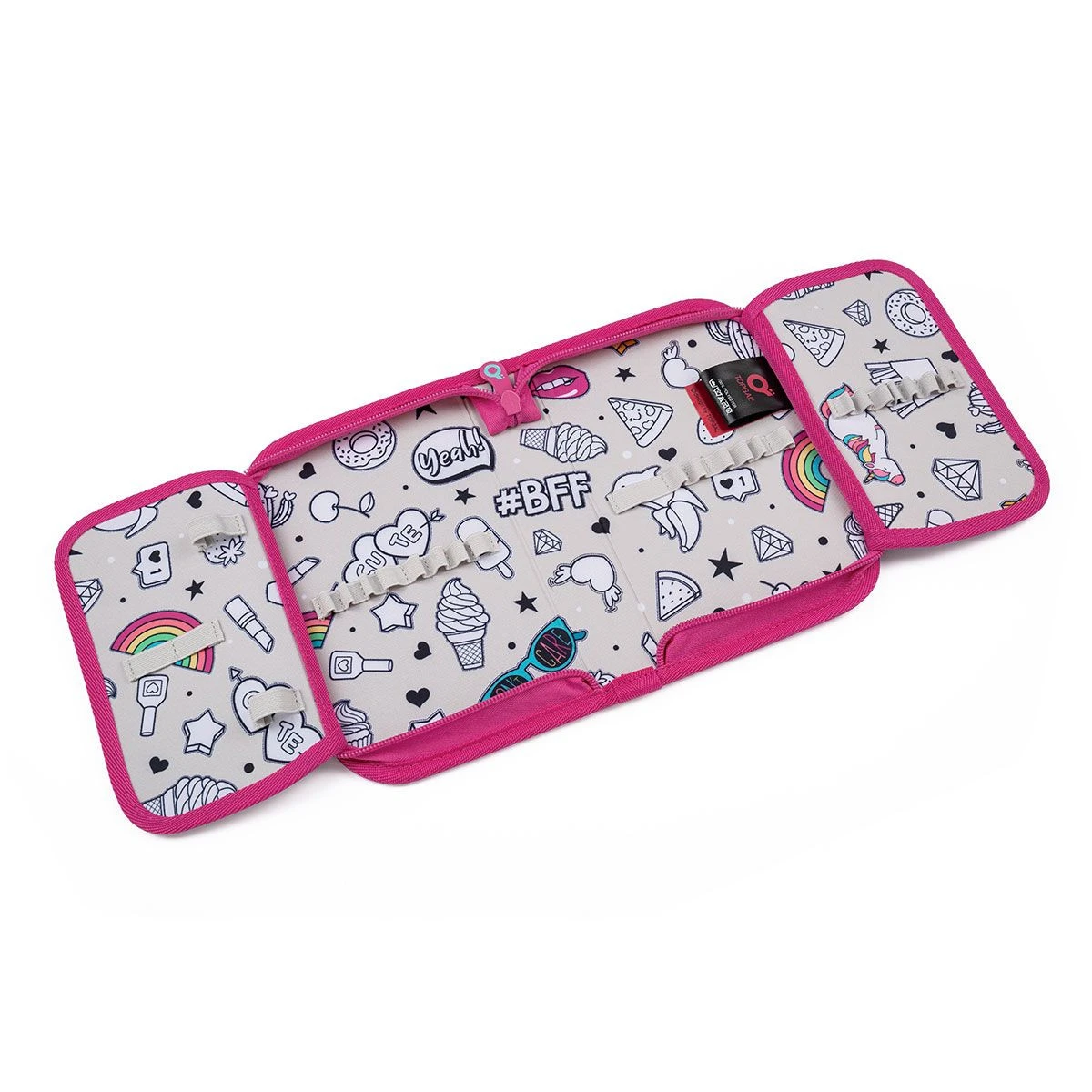 Der Rucksack hat eine große Kammer mit einem gelben wasserdichten Organizer. Auf der Vorderseite der Aktentasche finden Sie zwei weitere praktische Reißverschlusstaschen mit einem Blitzlicht. In der Innentasche ein Namensschild. Die BEBE Aktentasche ist kleiner als die anderen Rucksäcke aus dem Topgal-Sortiment. Sie ist 37 cm hoch. Es passen jedoch bequem A4-Ordner und alles, was mindestens für die ersten beiden Grundschulklassen benötigt wird, hinein.