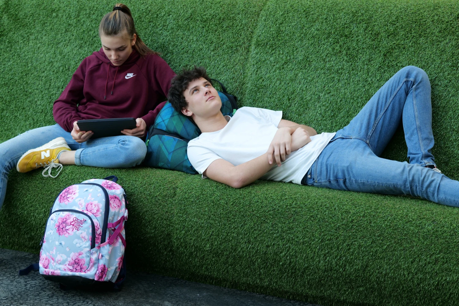 In die Hauptkammer packen Sie alles, was Sie für Schule oder Freizeit brauchen. Im Inneren der Kammer befindet sich eine gepolsterte Laptoptasche, eine kleine Reißverschlusstasche und ein Karabiner für Schlüssel, der an langen Federn angenäht ist. Der Rucksack hat noch eine weitere große Tasche, die am Rücken versteckt ist. Sie ist ideal zum Tragen von Akten, Ordnern oder A4-Notizblöcke. Der Zugang zur Tasche erfolgt über einen Reißverschluss an der Seite des Rucksacks.